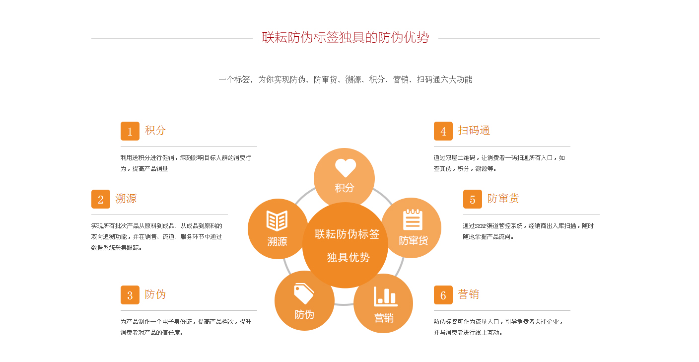 食品品日用品行業(yè)防偽標(biāo)簽食品安全是關(guān)系著全人類的身體健康和生命安全的重大問(wèn)題。企業(yè)急需一套管理產(chǎn)品市場(chǎng)流通的有效機(jī)制和防偽系統(tǒng)。、、、